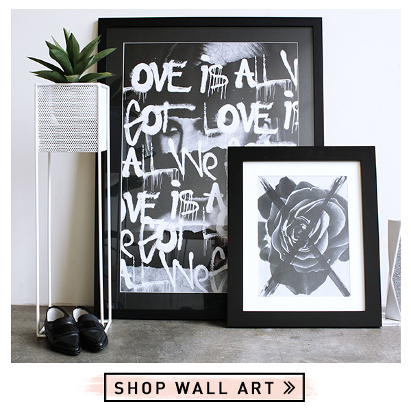 A1 prints // This can be easily leant up against a wall and not lose any of its impact. Don’t be afraid to tuck it in behind other treasures such as a stack of magazines or a side table. And you don’t need to leave him lonely – feel free to layer and overlap prints standing on the floor. Put small next to big and have the A1 behind and the A3 up front. What we love right now is raw natural materials and juxtaposing these with cleaner, more simplistic lines.